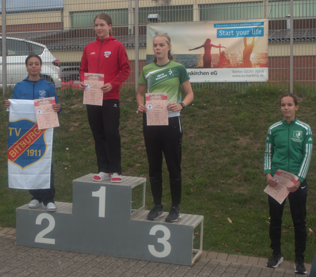 Mit guten Leistungen zeigten sich die Bitburger Leichtathletinnen im Mehrkampf der WJ U 16). Der Fleiß und Ehrgeiz von Finja Gieretz, Henrike Heyn und Sontje Heyn sowie weiteren Sportlerinnen der LG Bitburg-Prüm wurde ebenfalls mit dem Rheinland-Meistertitel belohnt. Auch hierzu herzliche Gratulation.